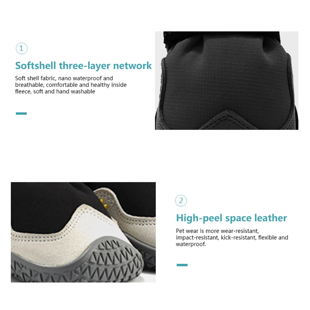Convenient & Secure: Double soft nylon and self-adhesive strap design for manual adjustment, easy to put on/off. These large dog shoes expand with adjustable straps to ensure a tight fit.