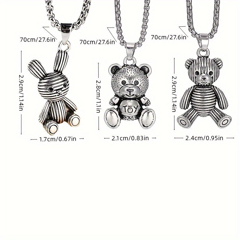 Little Bear Titanium 201 Stainless Steel Necklace Hip-Hop Rabbit Pendant Men's Minimalist Versatile Long Sweater Chain Accessory 27.56inch